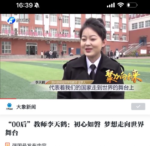 2024年3月7日 学习强国-强国号-“00后”教师李天鹤 初心如磐 梦想走向世界舞台